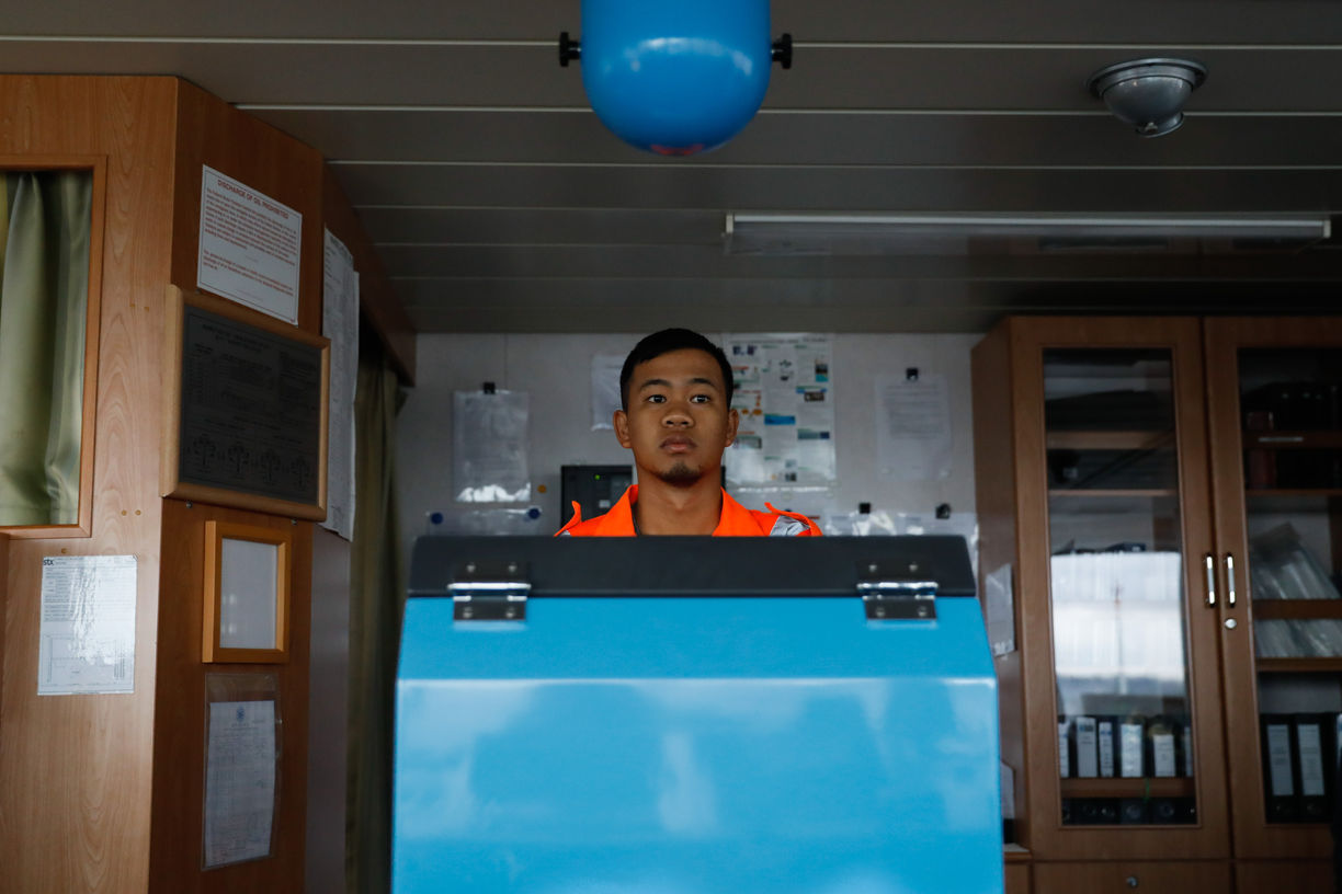 17 hommes. Tous philippins à part Sergey, chef mécanicien et exception russe.